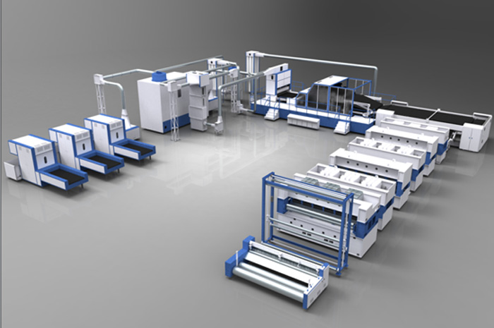 主要規(guī)格:產(chǎn)品凈寬:2200mm, 3300mm, 4500mm針刺頻率:800-1200n/min線速度:0.6-6m/min工藝流程圖: